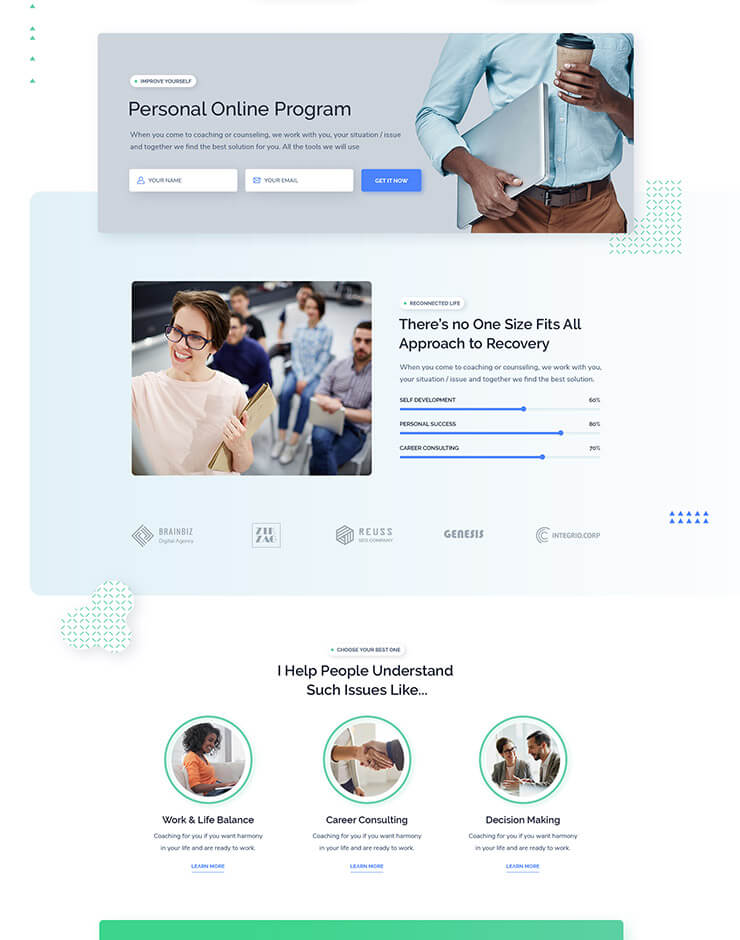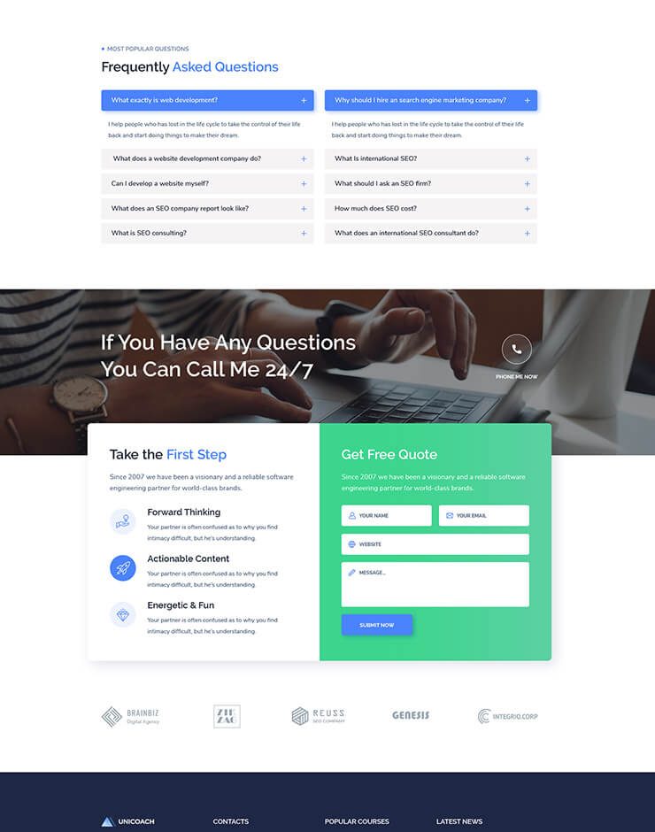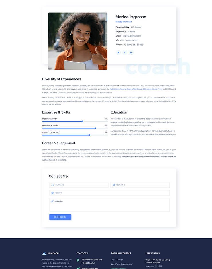 Unicoach is fully responsive, it means your website will certainly look & feel absolutely gorgeous regardless of the device type or the screen size it is being viewed on. Try it!